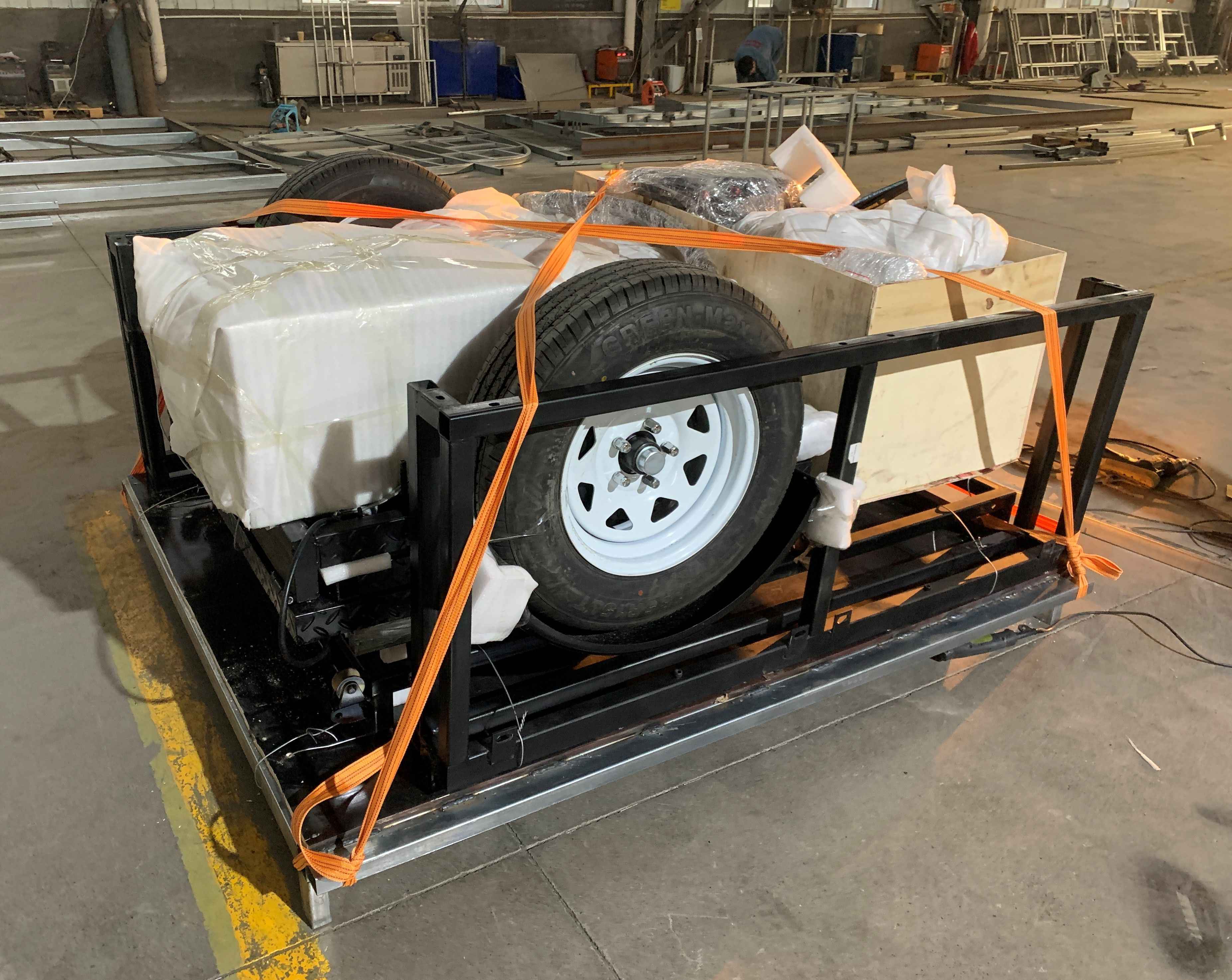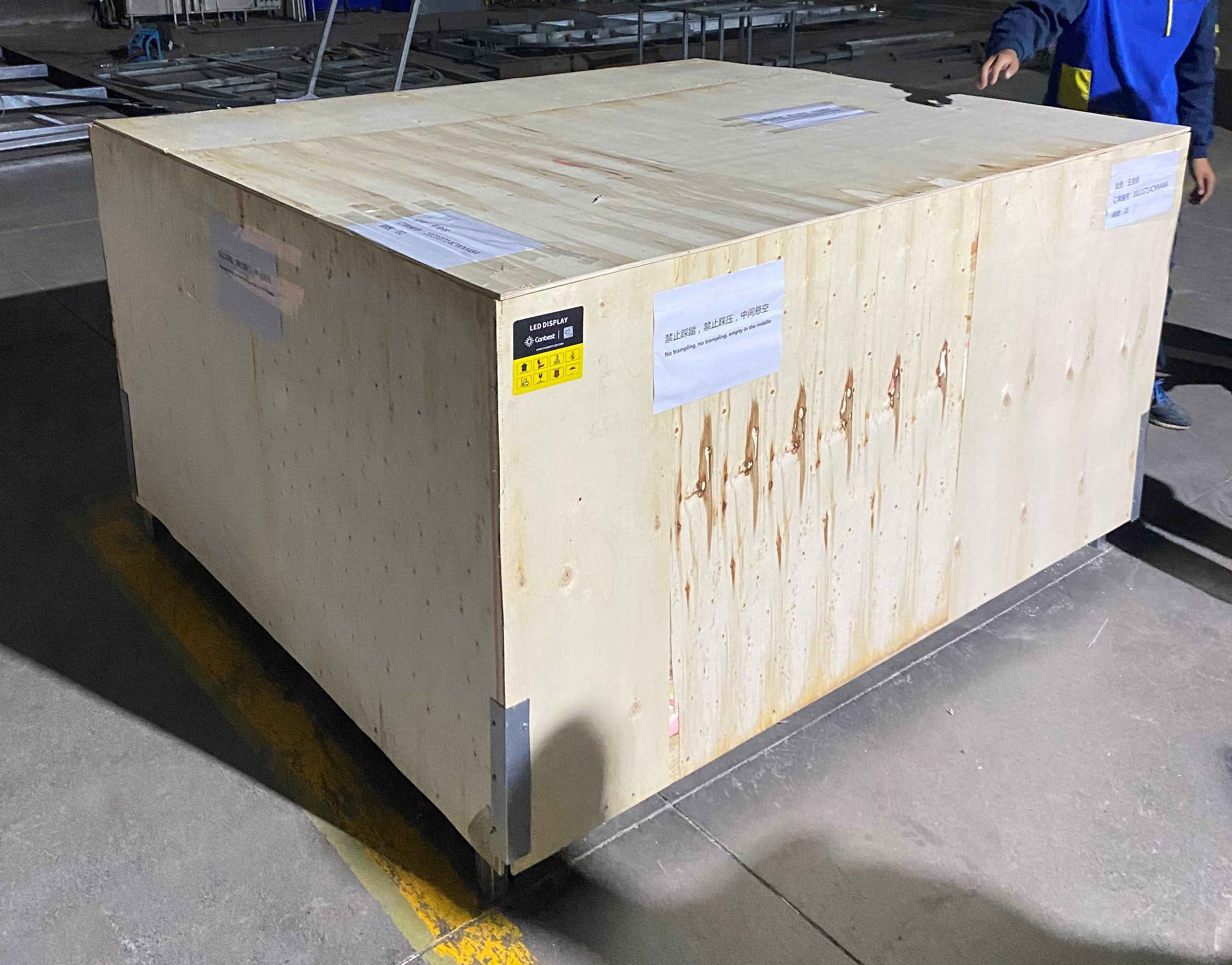 Trailer advertising led display is packaged in wooden cases.