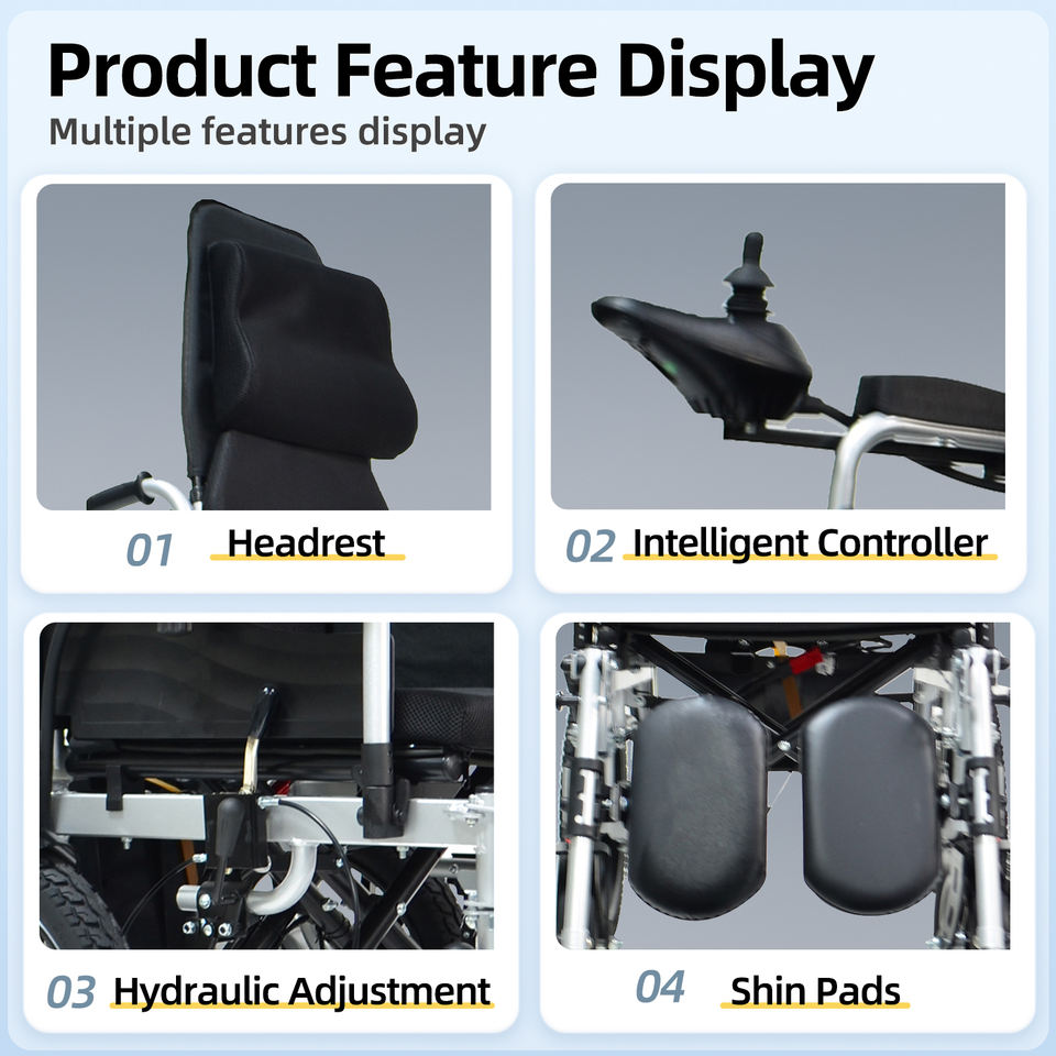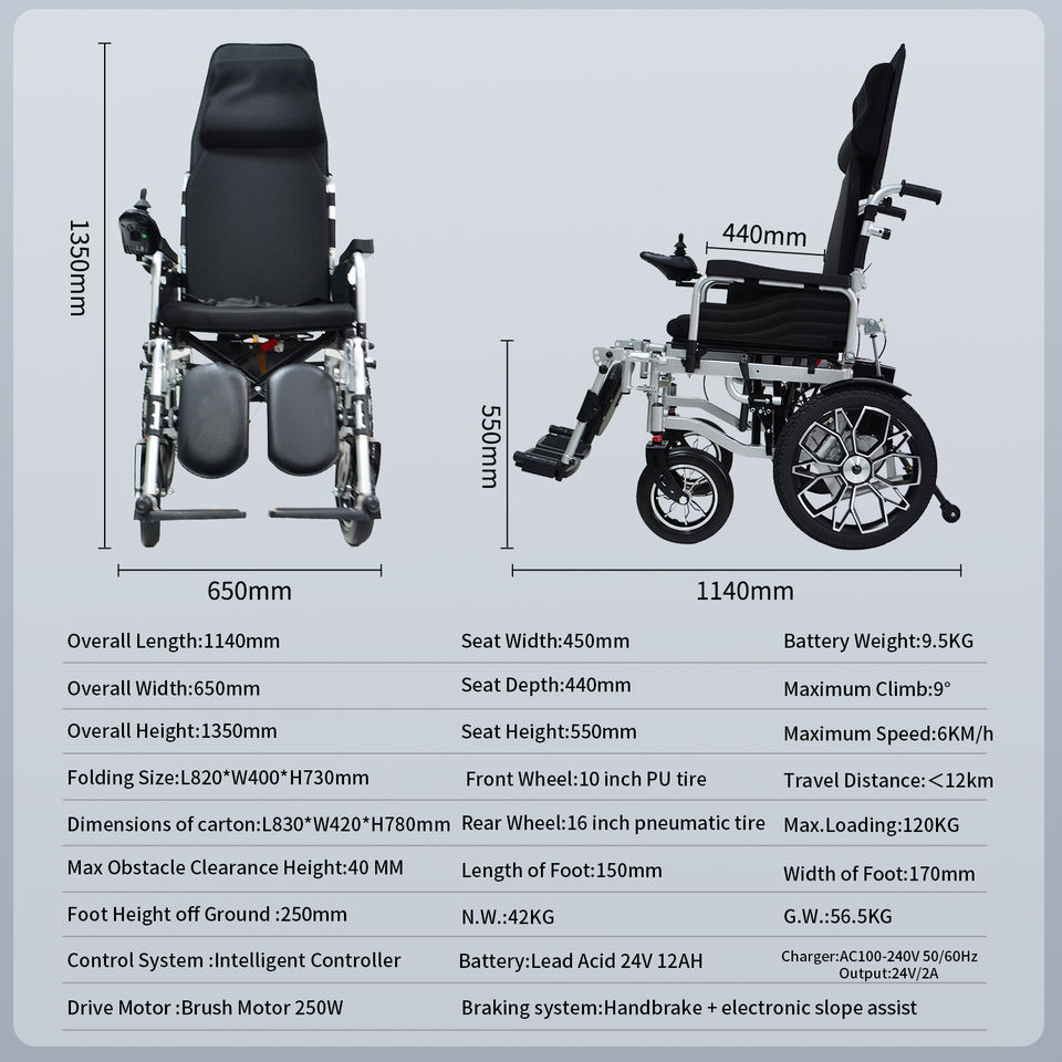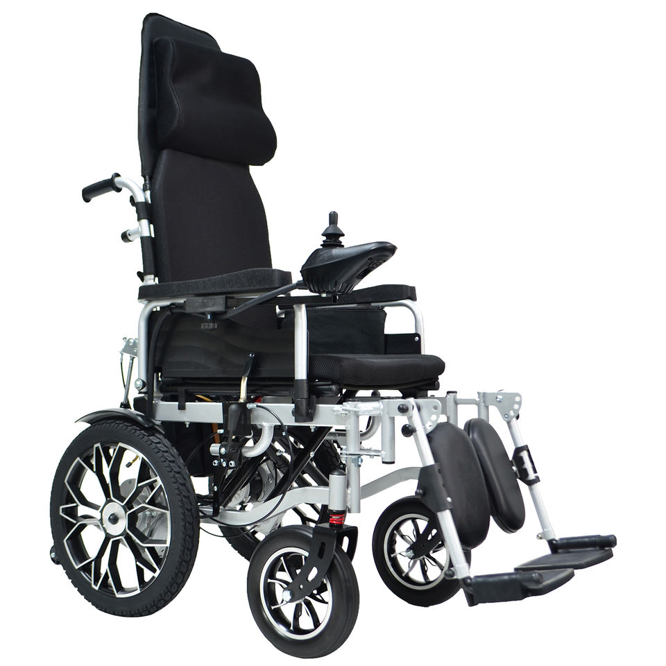 Fauteuil roulant électrique inclinable à dossier haut pour extérieur, cadre en fer - Batterie au plomb-acide, mobilité stable
