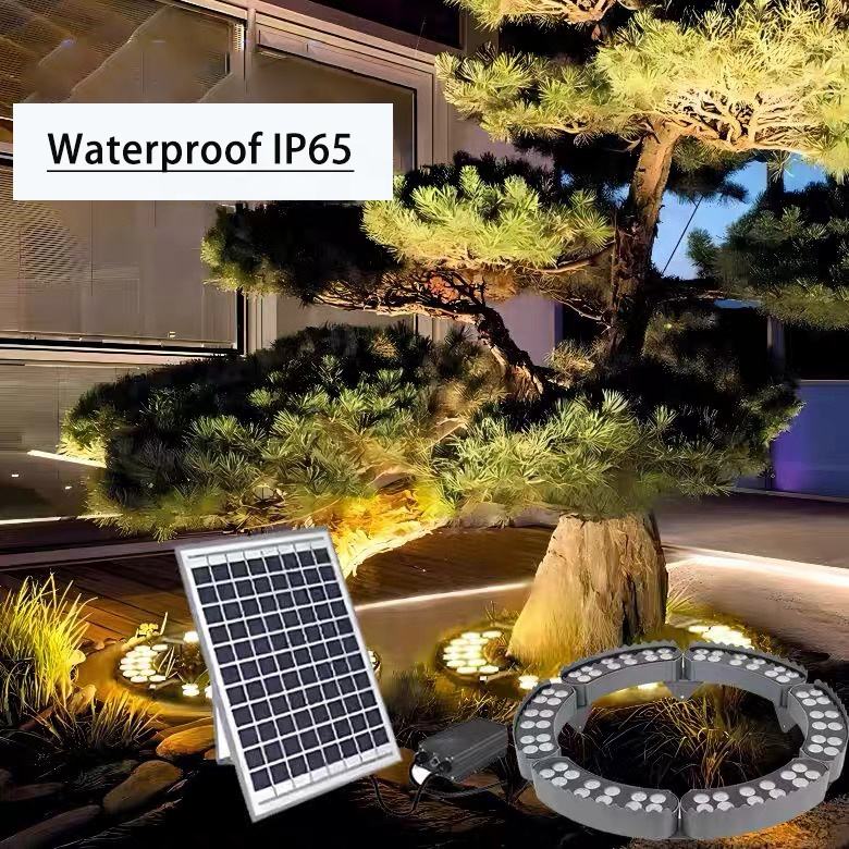 Lumière LED circulaire en aluminium pour palmier, haute luminosité, solaire, 48W 60W 72W, projecteur solaire extérieur pour arbre