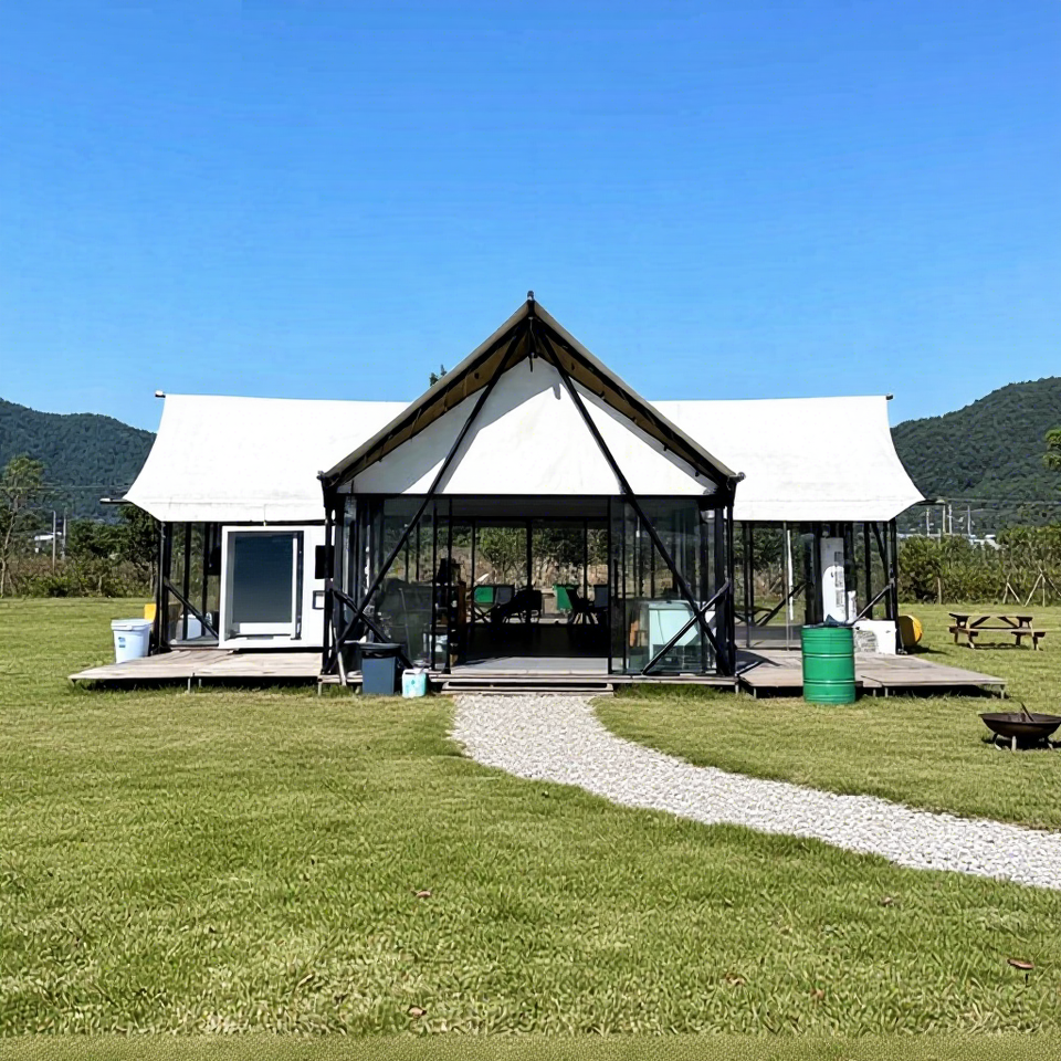 Tente de camping familiale de haute qualité pour l'extérieur, deux chambres, tente d'hôtel, tente nomade, camping, tente de villa en verre durable de luxe