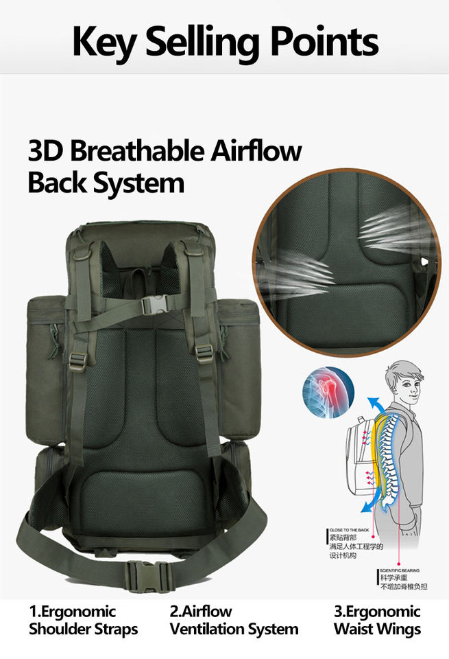 Sac à dos de randonnée sportif d'extérieur grande capacité, imperméable, pour alpinisme, chasse, sac d'assaut Molle, sac à dos tactique