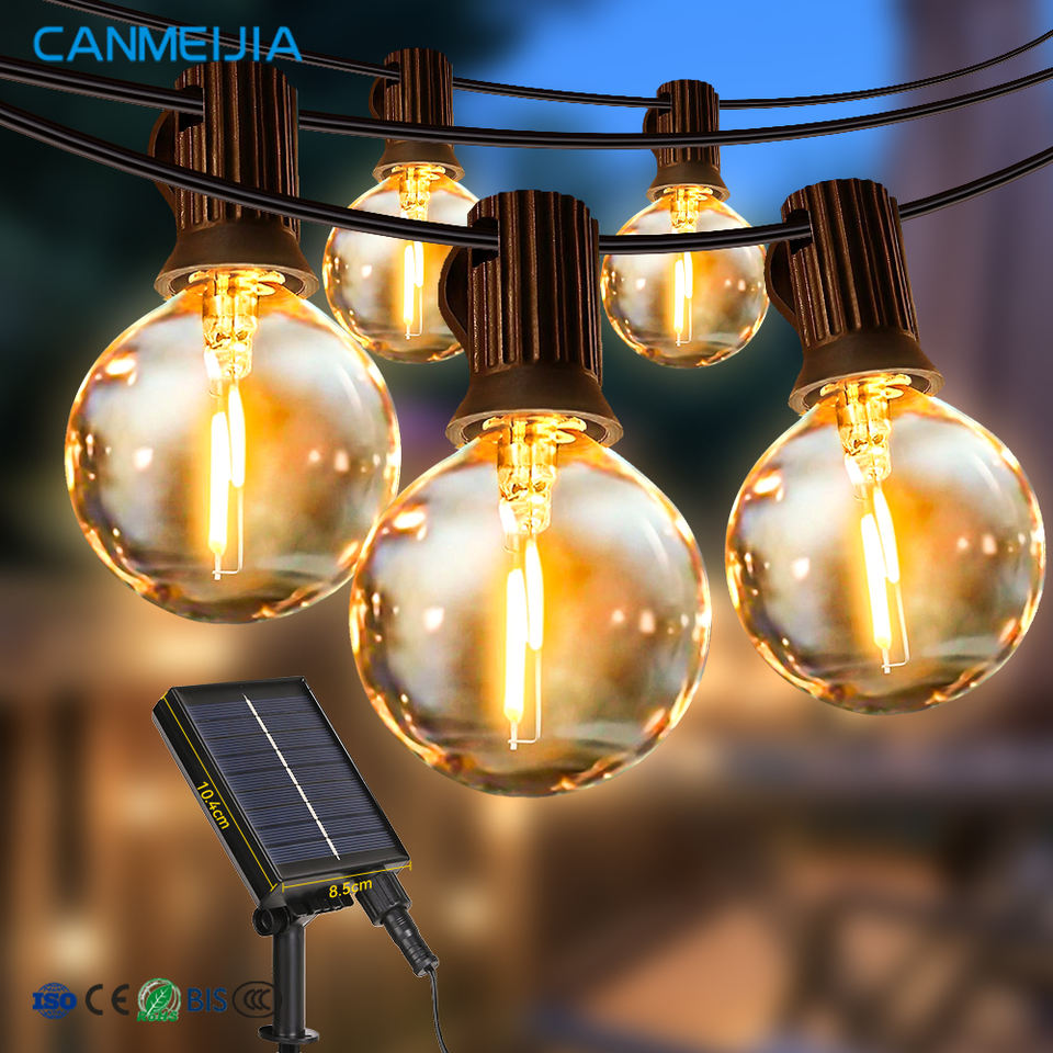 Guirlande de lumières LED solaires G50 étanches IP65 pour extérieur, idéale pour les décorations de mariage, de patio, de jardin et de Noël