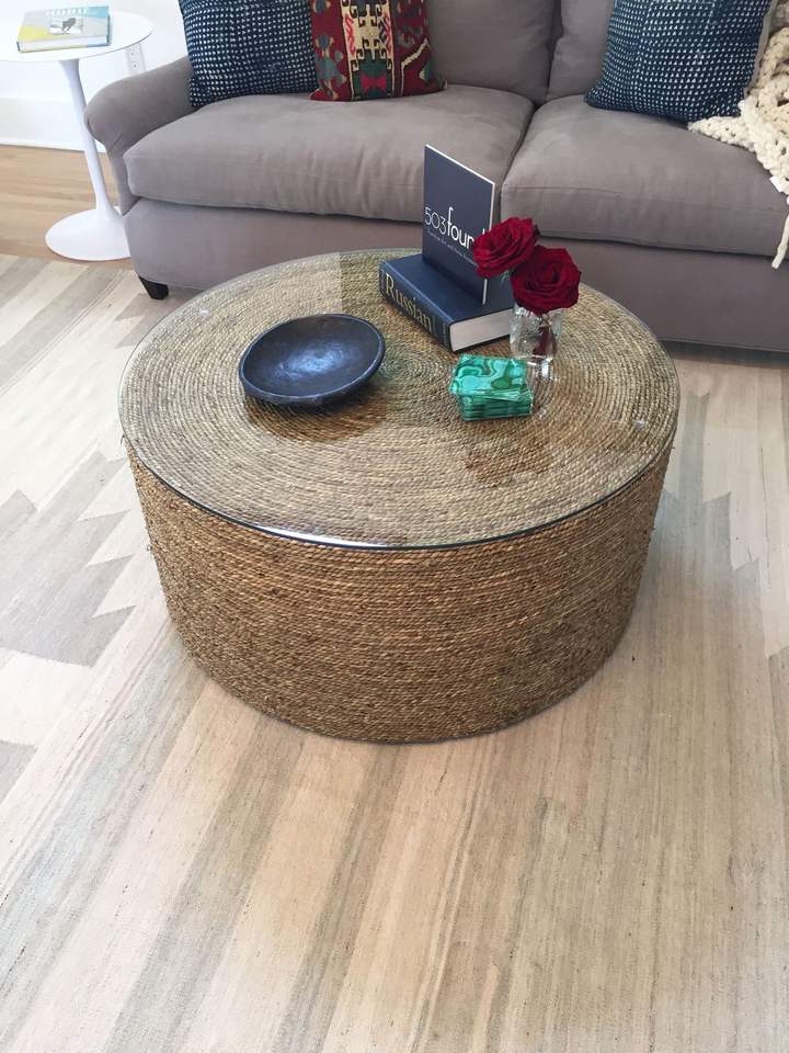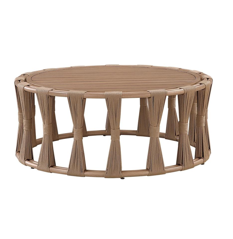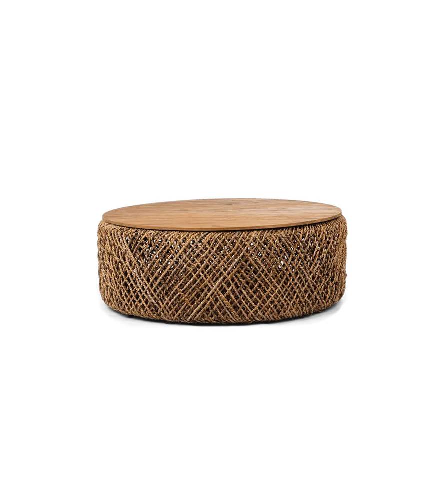 Table basse en corde pour l'intérieur et l'extérieur avec structure métallique et corde tressée durable pour ensemble de meubles de patio