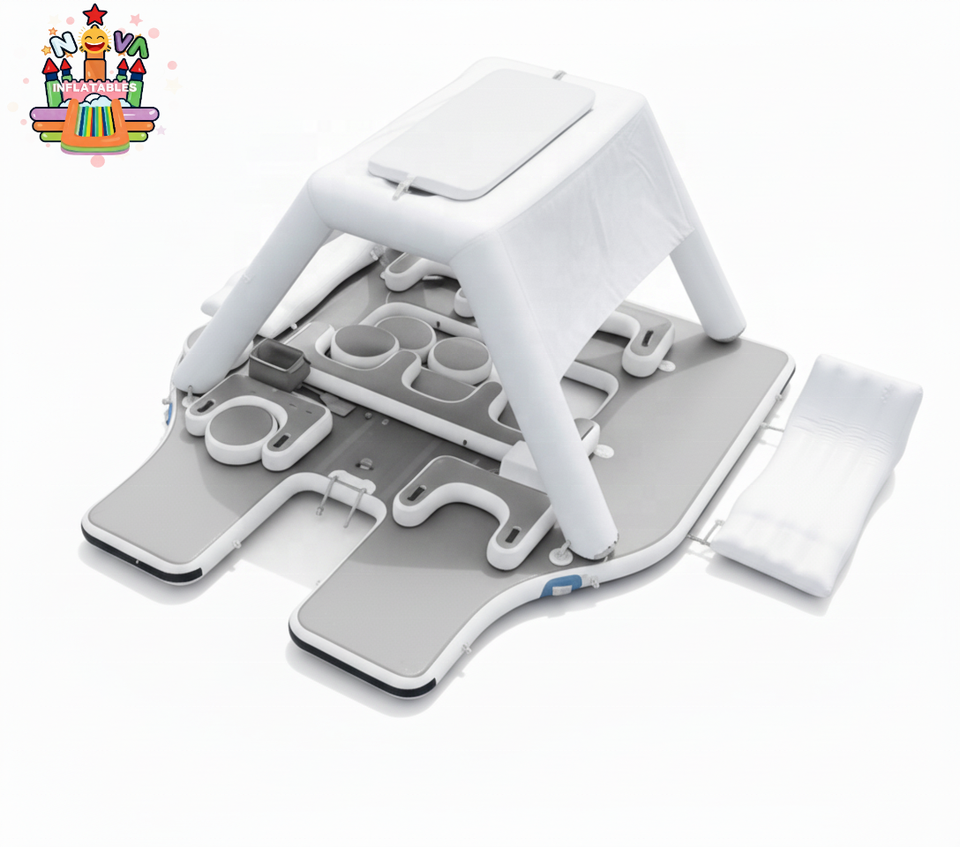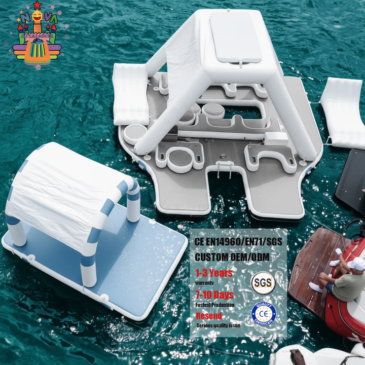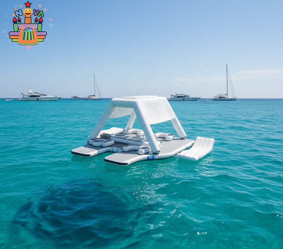 Île flottante gonflable d'extérieur avec auvent, tente flottante, camping, yacht, piscine, lac, flotteur aquatique, divertissement