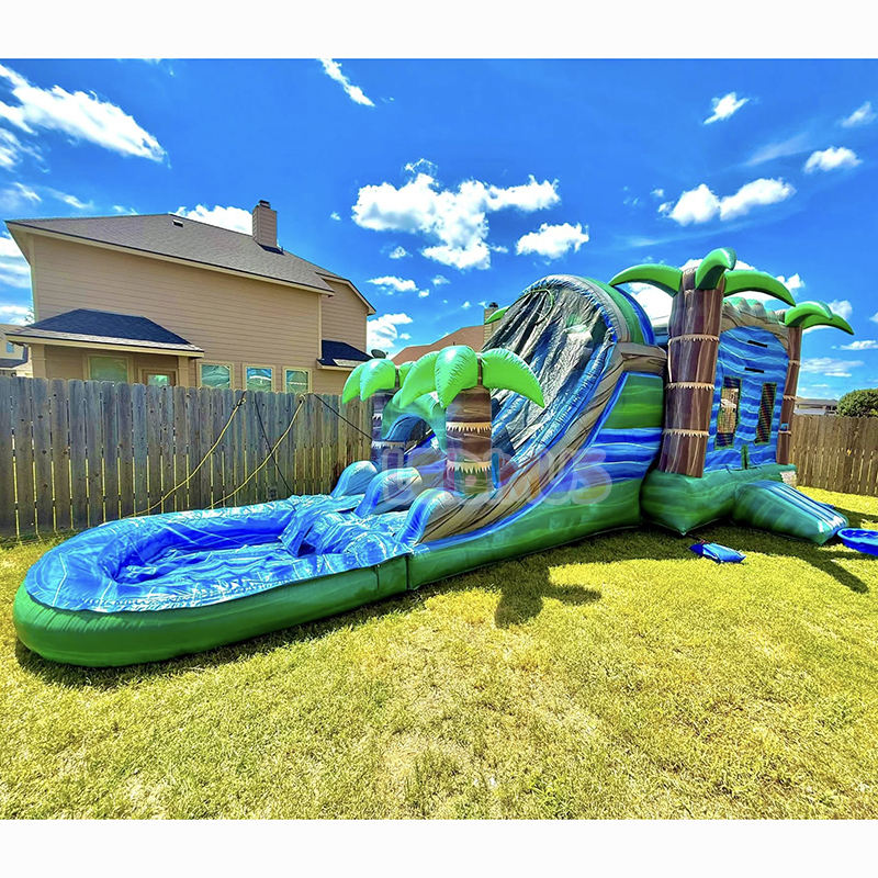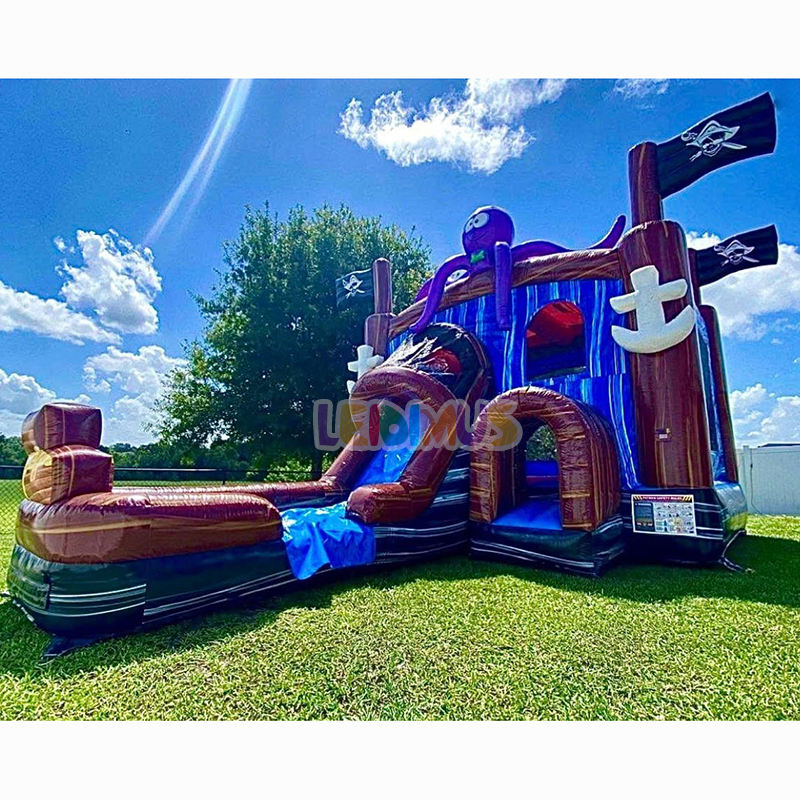 Toboggan aquatique gonflable d'extérieur Combo Château gonflable Maison de saut avec canon à eau et piscine