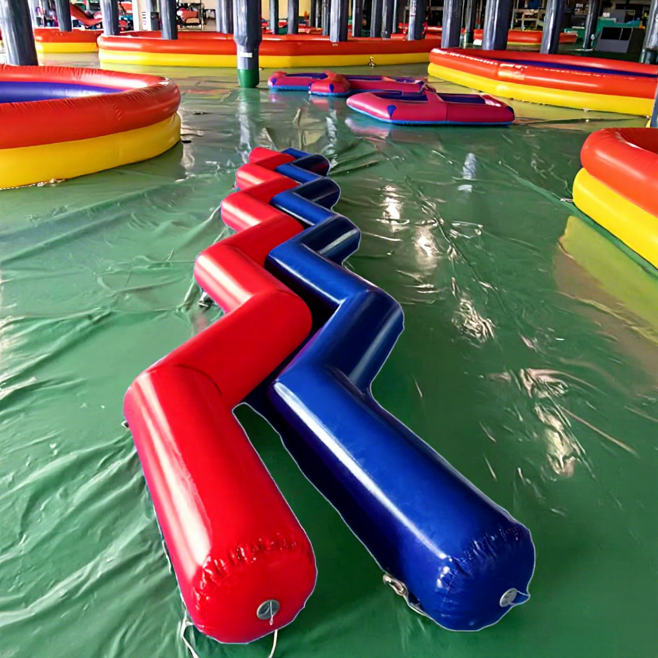 Parcours gonflable en zigzag pour activités de team building et équipements sportifs, en PVC, pour événements et usage commercial