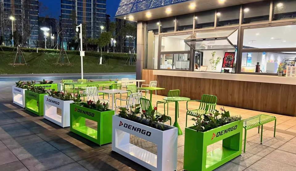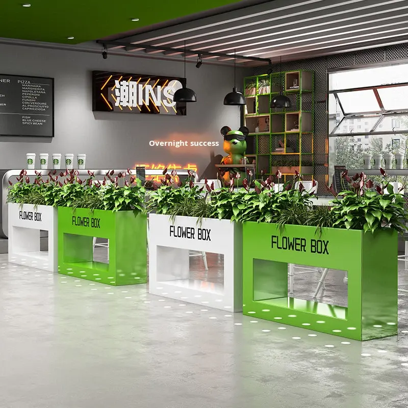 Boîte à fleurs en fer d'extérieur, combinaison de mobilier d'extérieur personnalisé de style industriel pour salon de thé, café, zone de repos, cloison, boissons froides