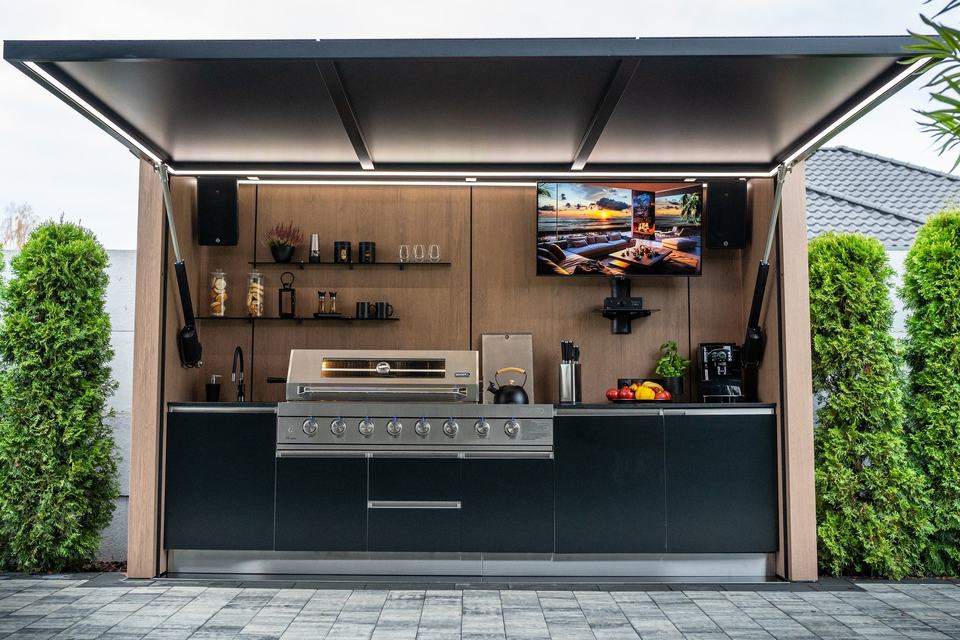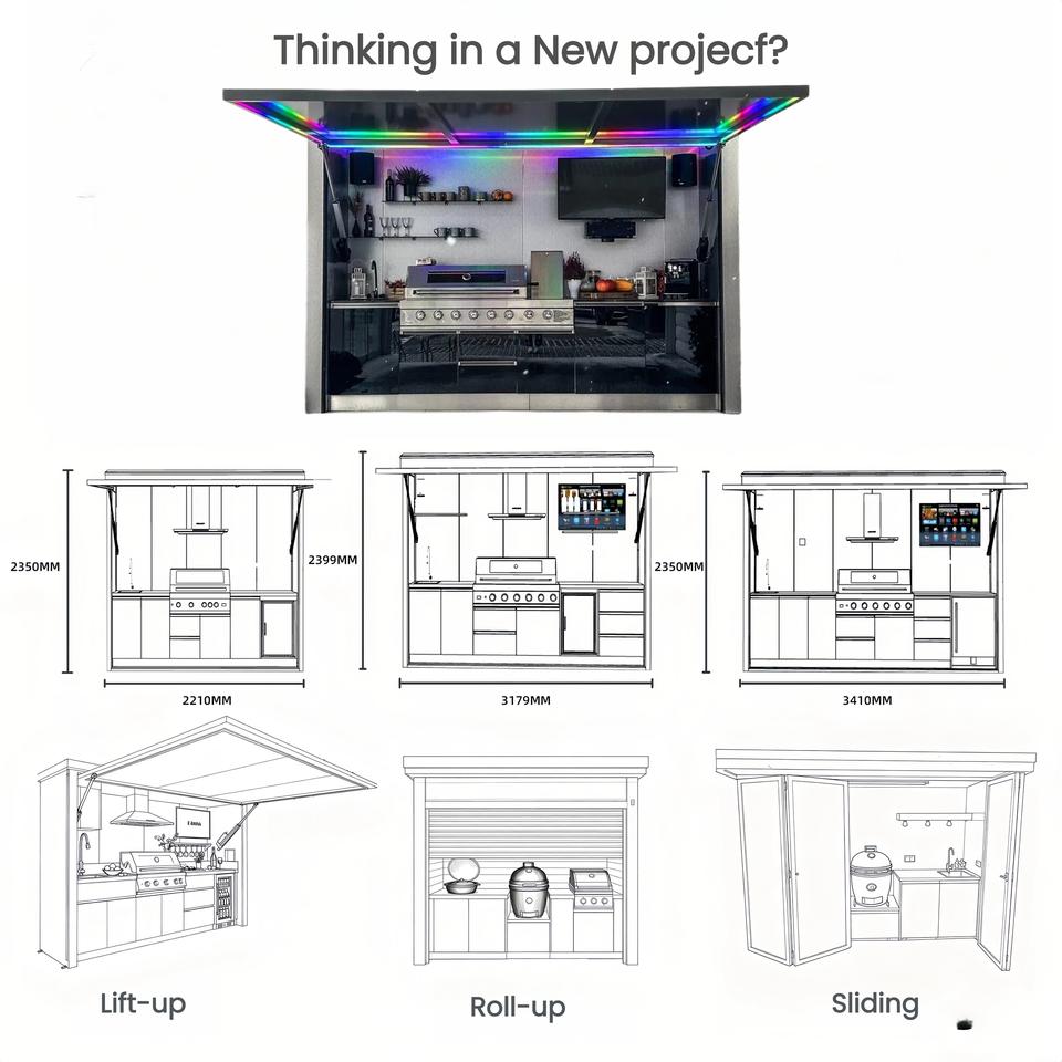 Built-in Grill, Drawer,Dustbin,Storage; Optional Sink, Pizza Oven