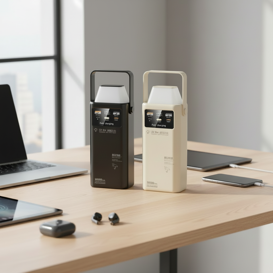 Batterie externe portable pour chantier extérieur 30000mAh LiFePO4 22.5W Charge rapide Étanche Lampe torche LED Type-C
