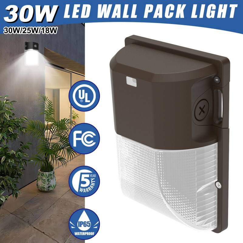 Mini applique murale LED extérieure 3600LM 120~277V 30/25/18W 3CCT réglable avec cellule photoélectrique, lentille PC et driver UL