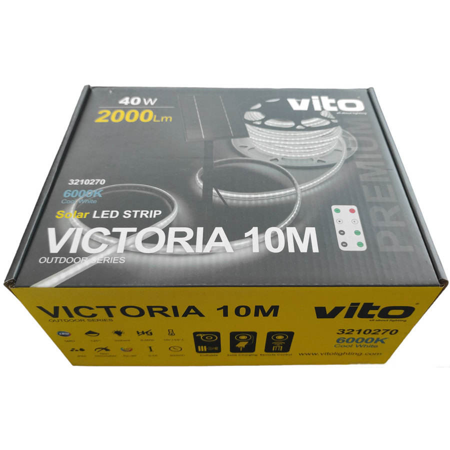 Bande LED extérieure 10m alimentée par énergie solaire 40W 2000Lm 6000K Lumière froide avec télécommande pour l'éclairage des allées de jardin Fabriqué en Italie