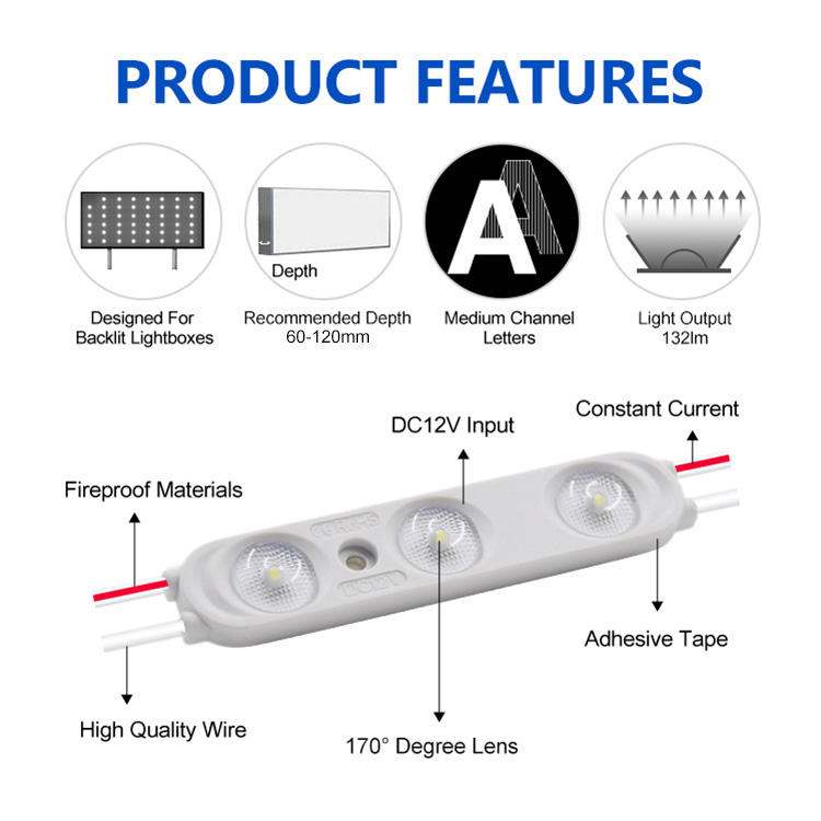 Product name:2835 12V 3 LEDs Single Color LED SMD LED Injection Module