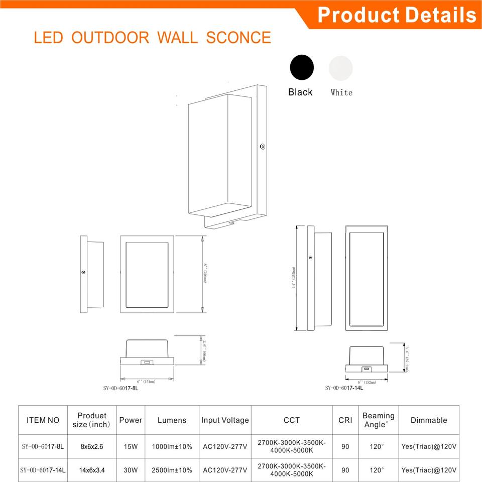 Luminaire extérieur étanche IP65 à température de couleur réglable 5CCT en aluminium moulé sous pression pour éclairage mural de couloir