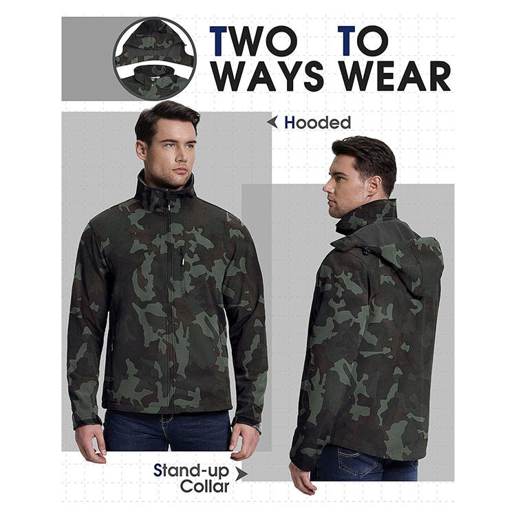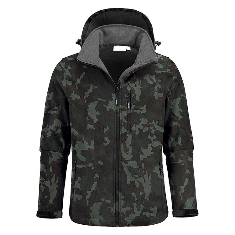 Veste softshell pour homme d'extérieur, camouflage, à capuche, fermeture éclair, manches longues, haute qualité, impression de logo personnalisée, nouveau design, poids léger