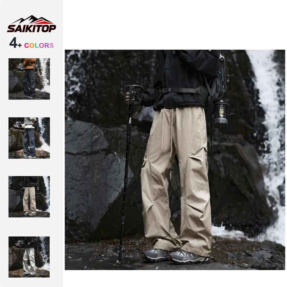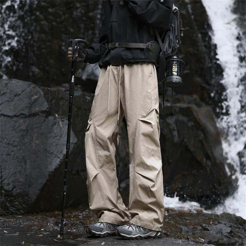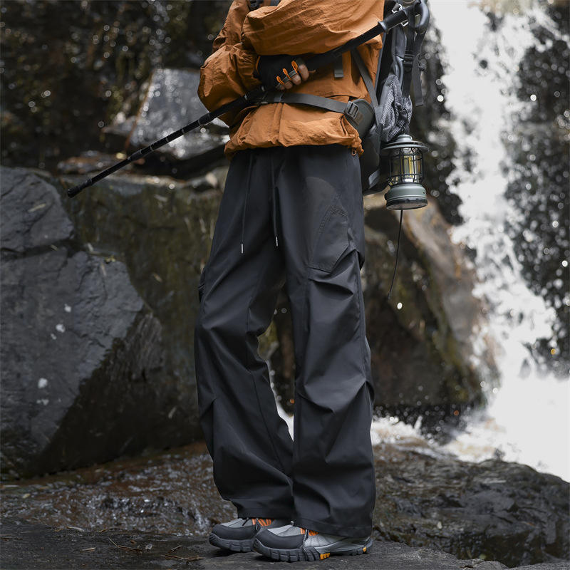 Pantalon d'extérieur pour homme, coupe-vent et imperméable, taille élastique, couleur unie, style empilé