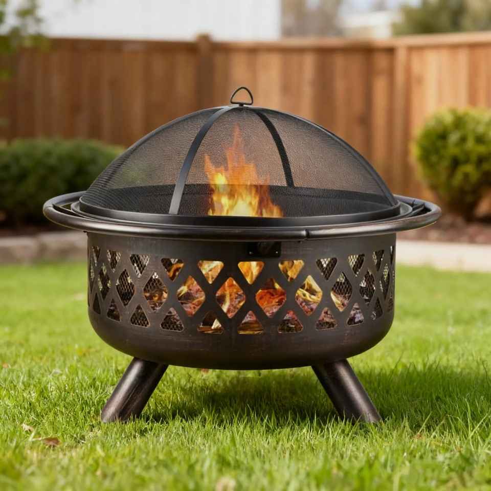 Brasero d'extérieur en métal avec écran anti-étincelles, chauffage de terrasse à bois, foyer de jardin, brasero de camping