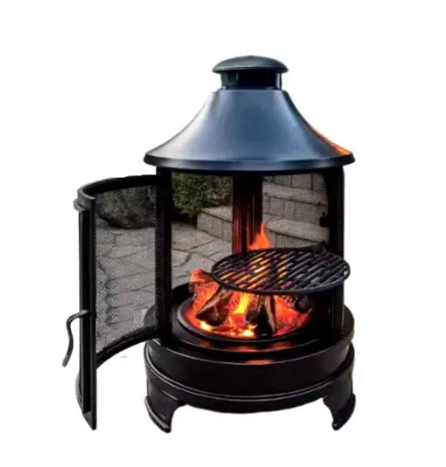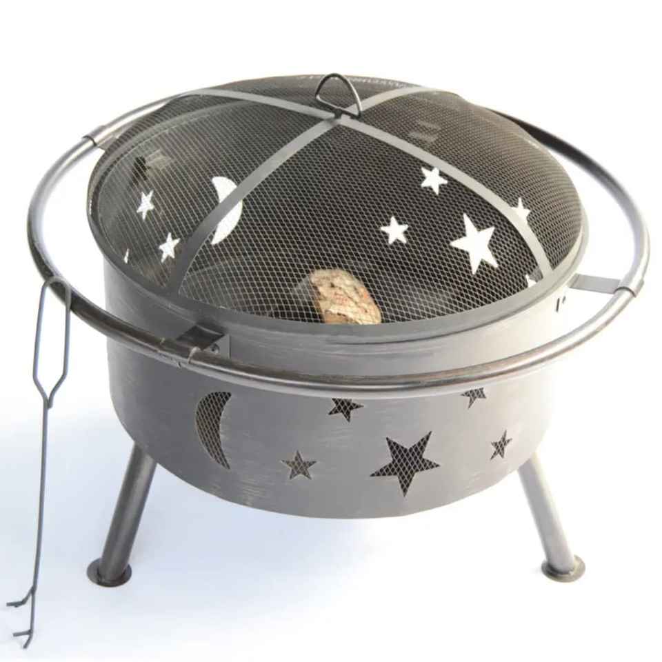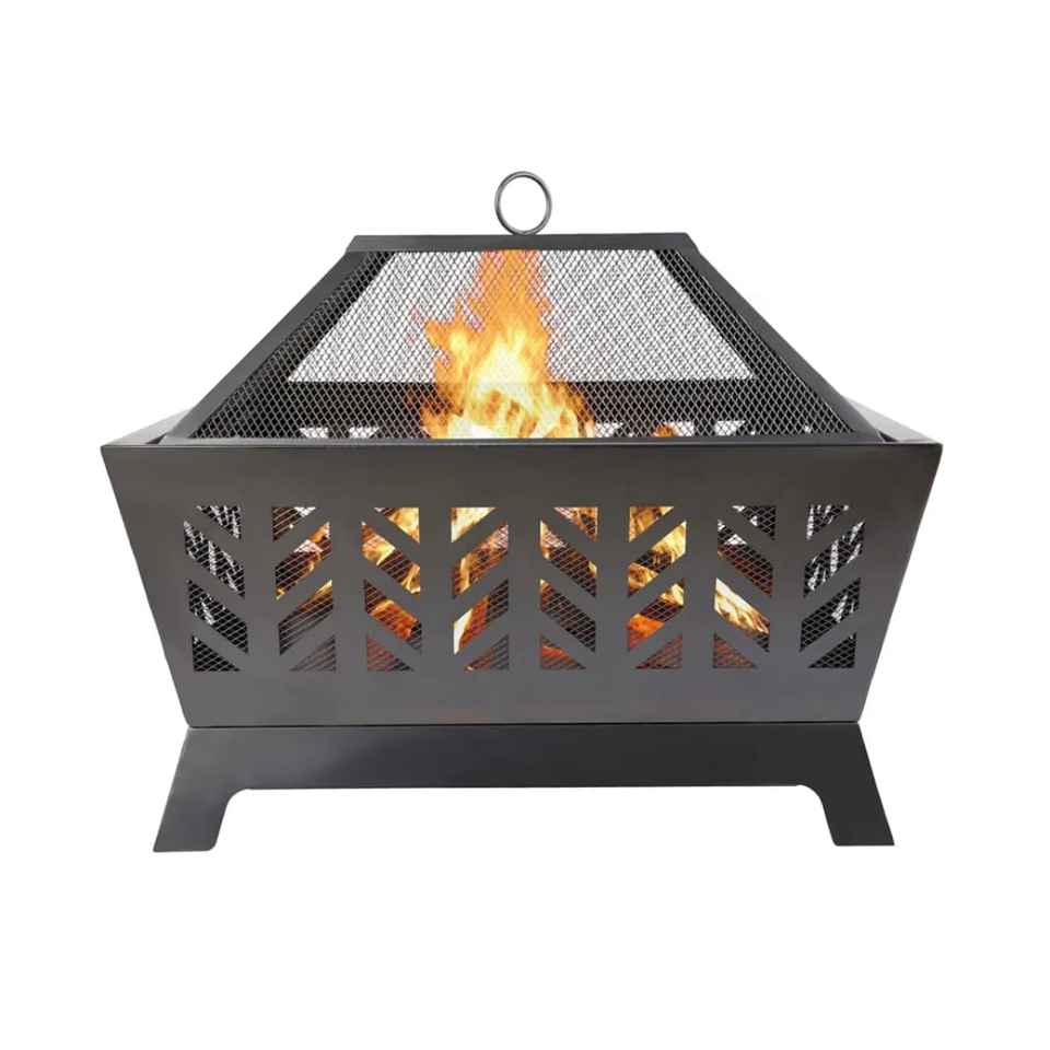 Brasero d'extérieur en métal avec écran anti-étincelles, foyer à bois pour patio, chauffage de jardin avec couvercle en maille