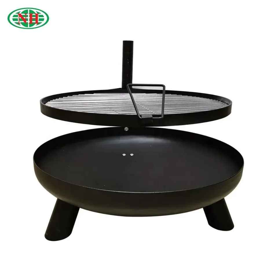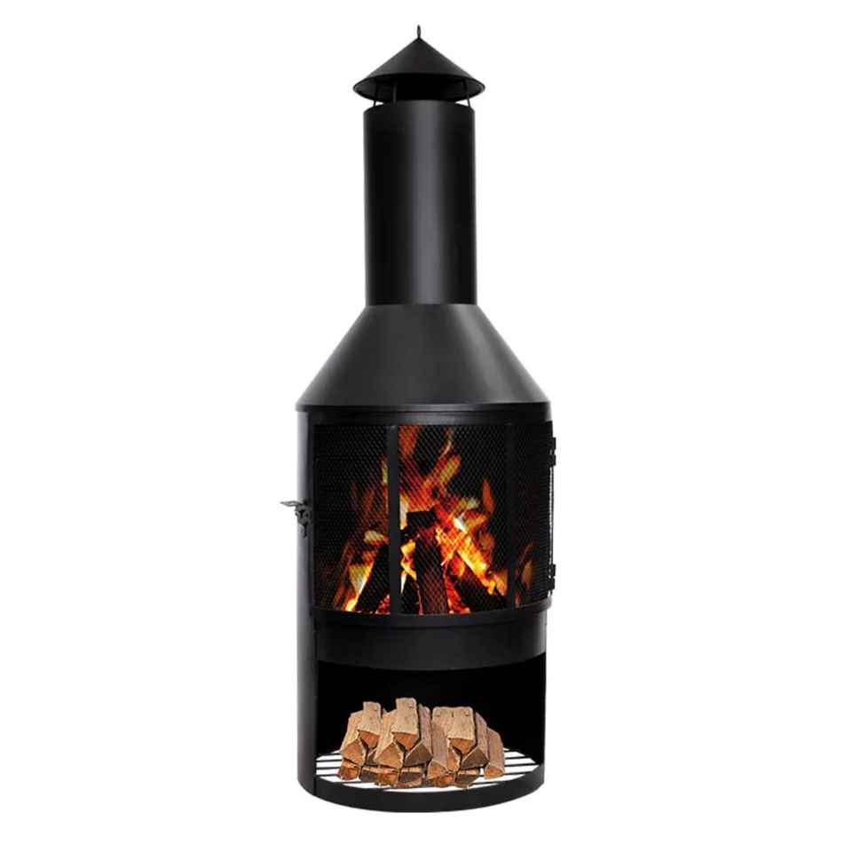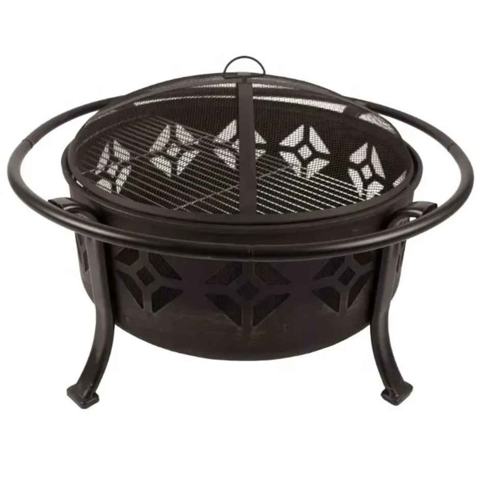 Brasero d'extérieur en métal avec couvercle pare-étincelles, foyer à bois pour patio, jardin et terrasse, avec support