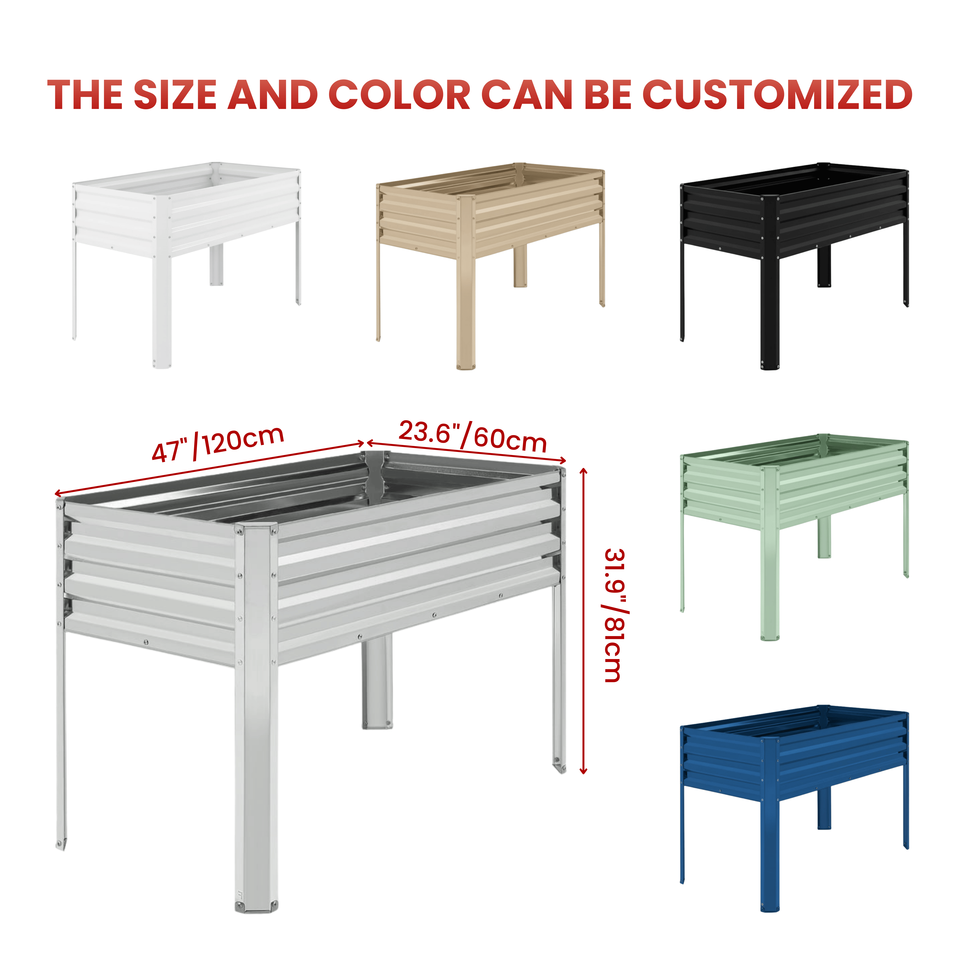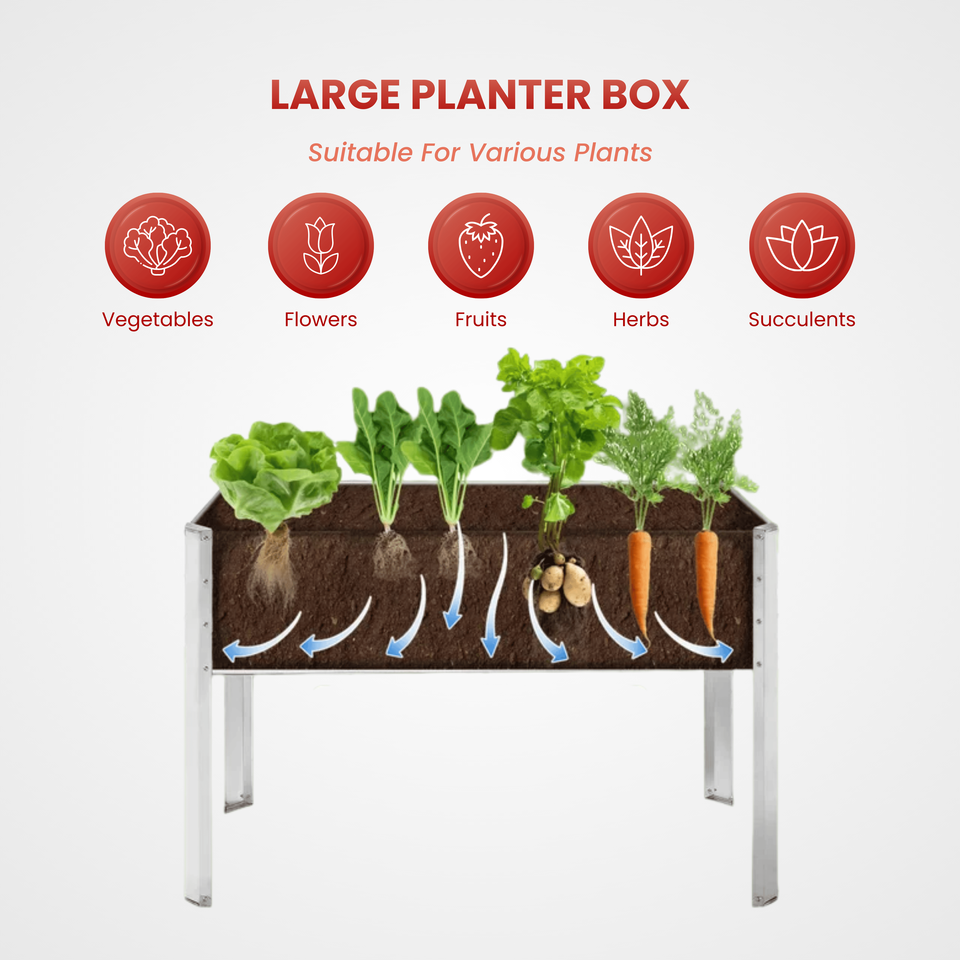 Outdoor Metal Raised Garden Bed Rectangular Planter Box Galvanized Elevated Garden Bed For Vegetables Flowers Garden Decor GB010