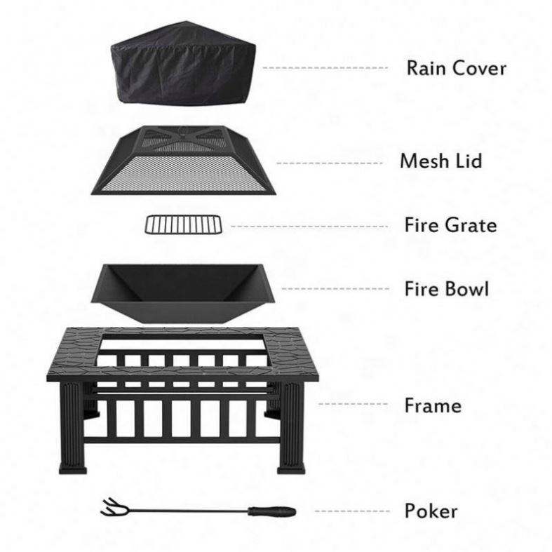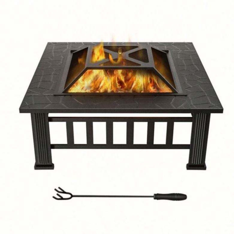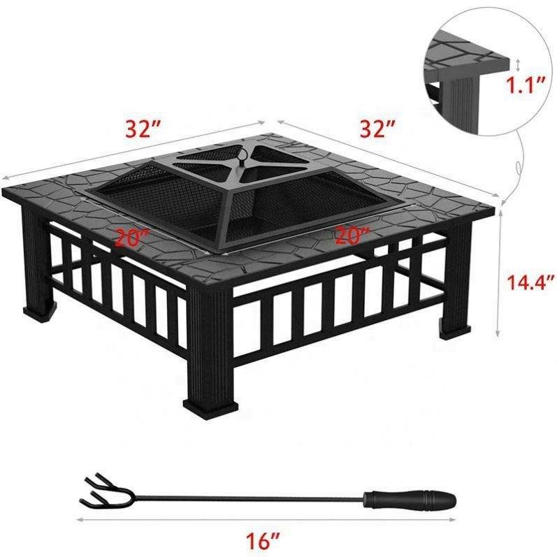 Outdoor Metal Square Table Backyard Patio Garden Stove Wood Burning Brazier Fire Pit With Spark Screen