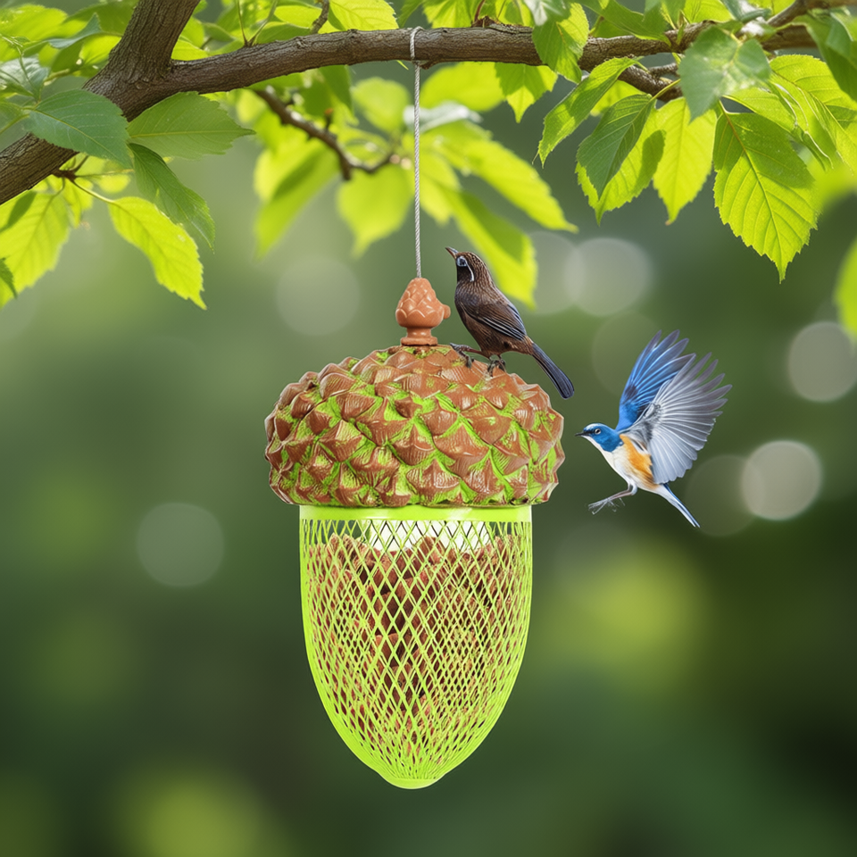 Mangeoire à oiseaux en métal pour l'extérieur, résistante aux écureuils, en forme de tube, verte, ronde, pour toutes les saisons, alimentation des oiseaux sauvages