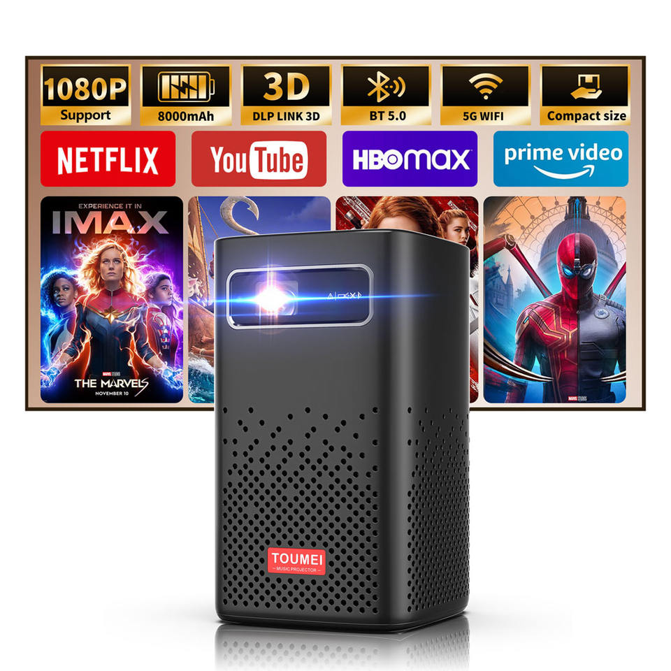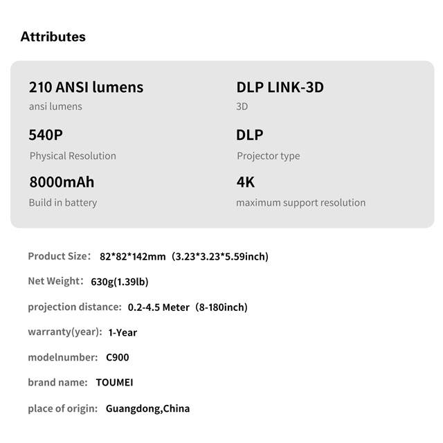 Mini projecteur extérieur C900 avec batterie rechargeable intégrée de 8000 mAh, 4K 180 Ansi, projecteur vidéo intelligent portable Android, 5W*2 stéréo