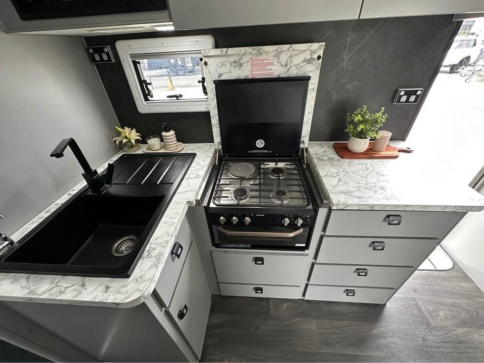 Coulissant en acier inoxydable 304, 1 évier, 2 poêles, Cuisinière à inductionCuisine