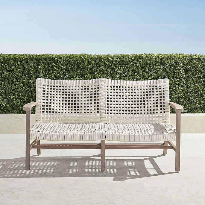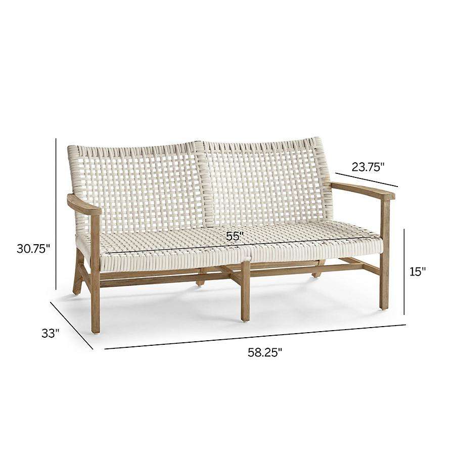 Canapé d'extérieur moderne en résine tressée de qualité supérieure, en teck et en rotin, avec assise incurvée et arrondie