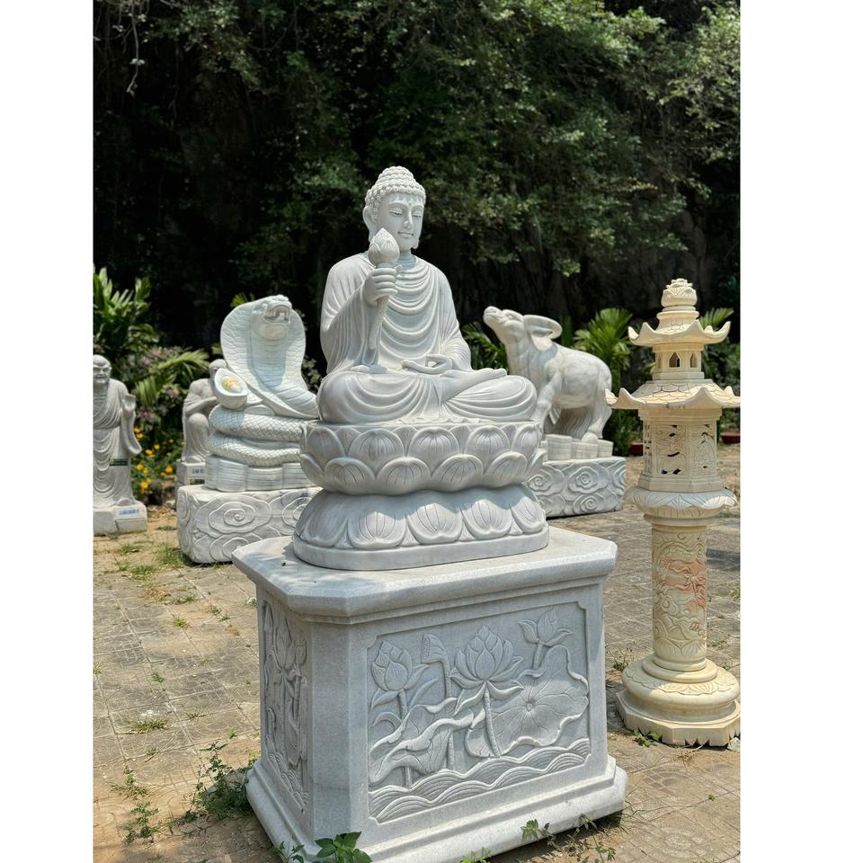 Customizable White Polished Natural Monolithic Stone Buddha Statue Durable Modern Shakyamuni Handcarved Outdoor New High Quality