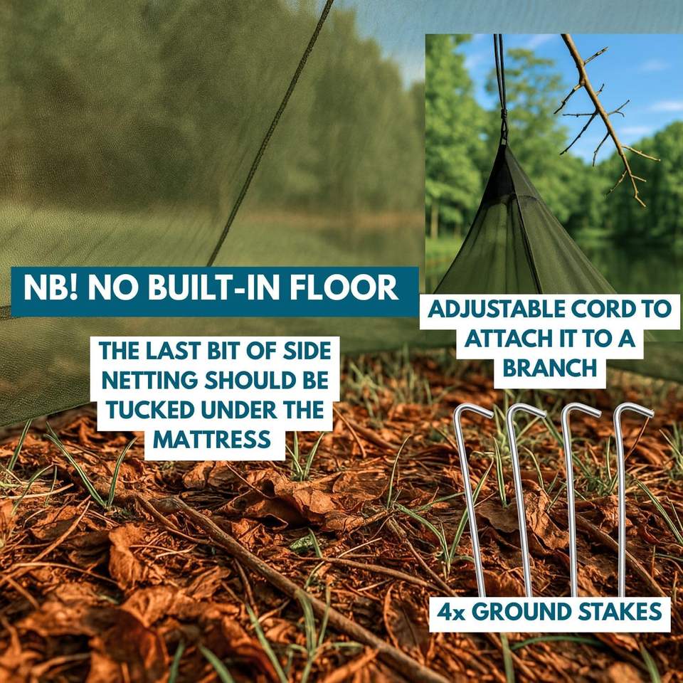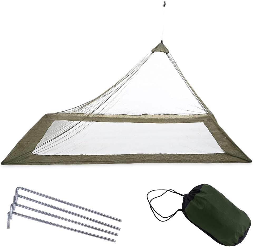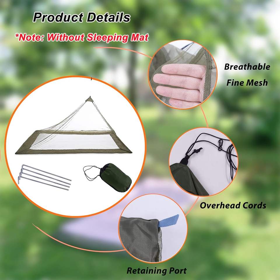Outdoor Mosquito Net Mosquito Netting for Camping Bed Green Bug Net with Stuff Sack 4 Ground Stakes Single Bug Tent