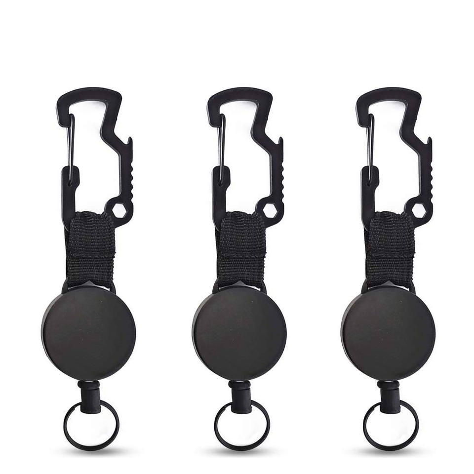 Lanière porte-clés multifonction en acier inoxydable pour l'extérieur, avec ouvre-bouteille et pince requin, pour clés et carte d'identité, noire