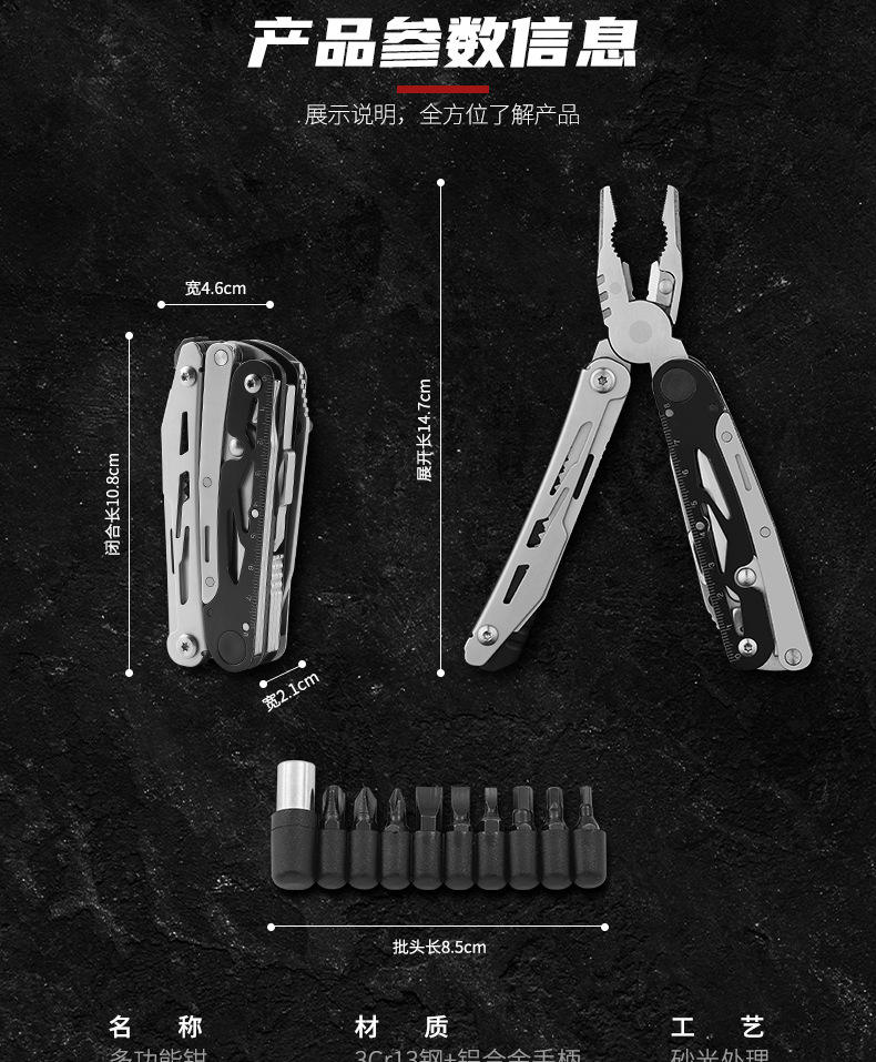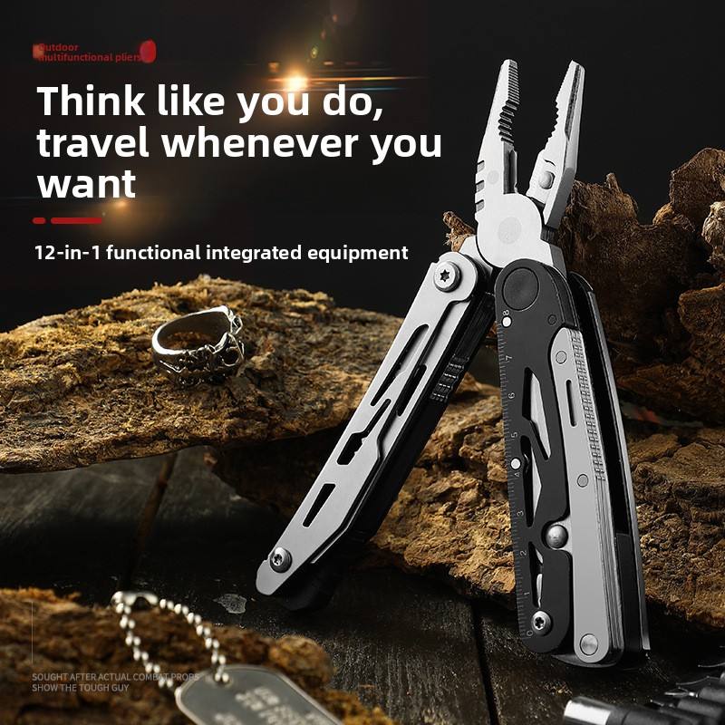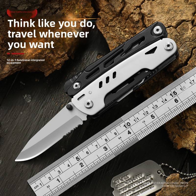 Pince pliante multifonction en acier inoxydable pour l'extérieur, outil portable multi-usage pour le camping et la voiture, ciseaux, couteau