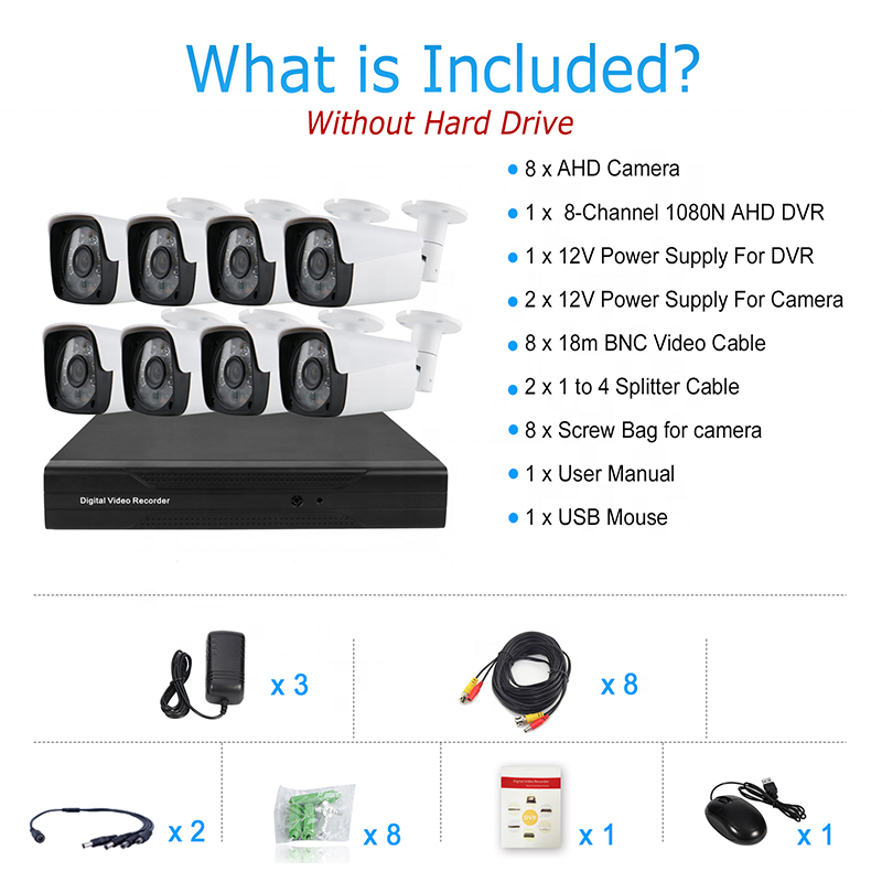 Ensemble de caméras de surveillance CCTV à vision nocturne pour l'extérieur, kit DVR 8 canaux, système de caméra de sécurité sans fil 8 canaux 1080P pour la maison