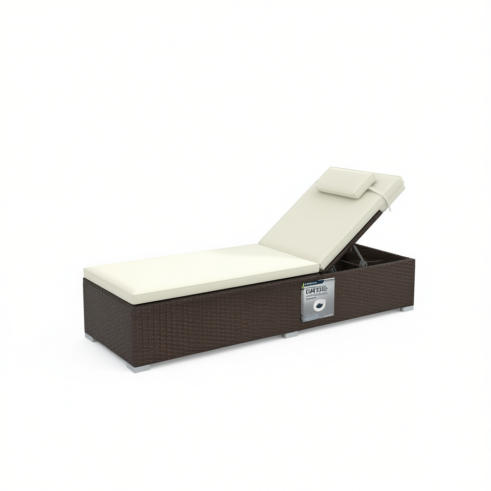 Chaise longue en rotin PE Off White avec dossier à 6 niveaux pour patio, jardin, meubles d'extérieur