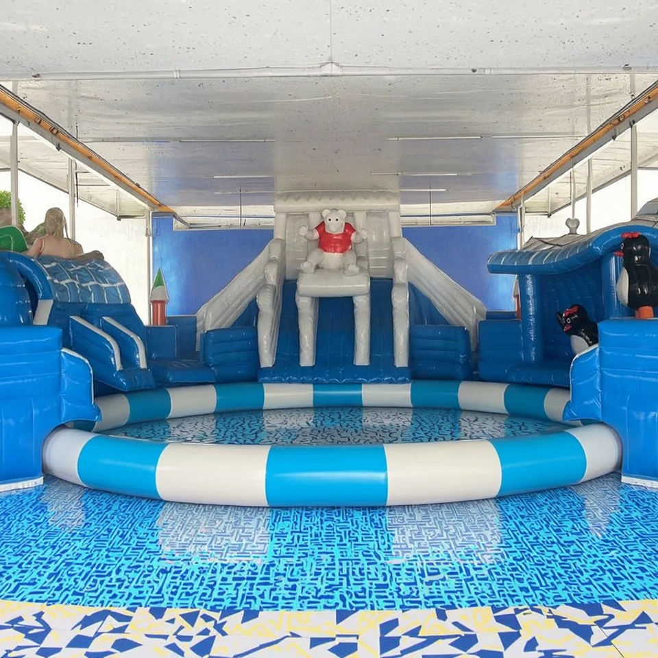 Piscine gonflable de combinaison de toboggan d'eau d'équipement de parc aquatique inspiré du monde de glace matérielle extérieure de PVC pour la barboteuse et l'amusement