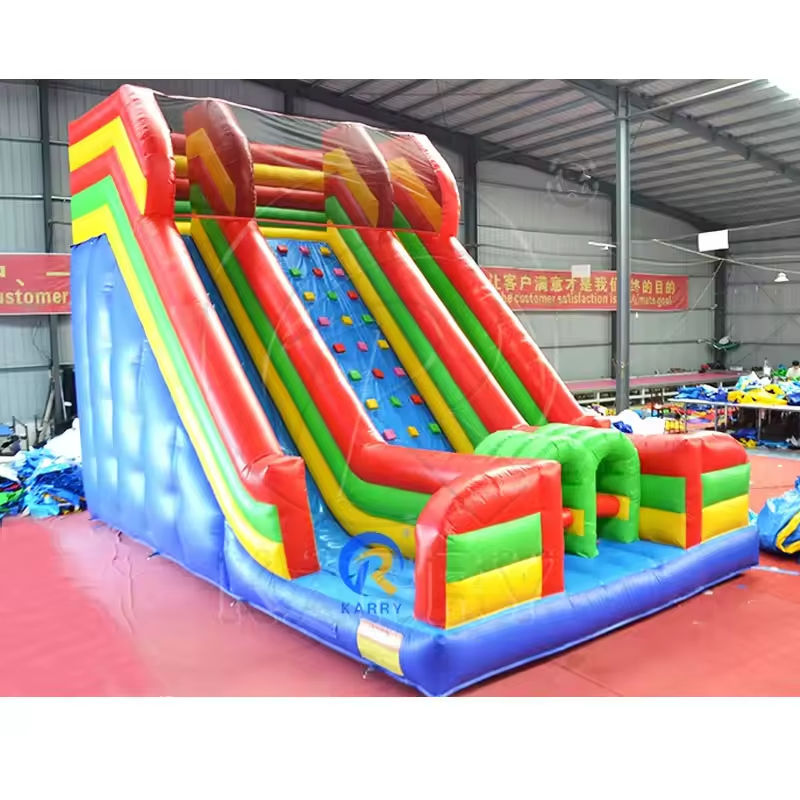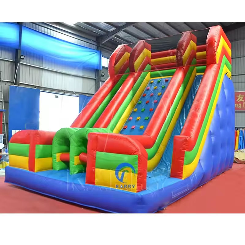Jeu de sport gonflable de château plein d'entrain de terrain de jeu de parc extérieur, double voie, avec toboggan sec et mur d'escalade