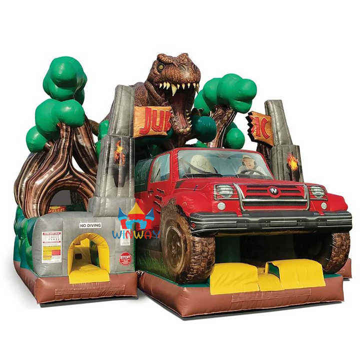 Parcours d'obstacles gonflable sur le thème du Jurassic pour les hôtels de villégiature