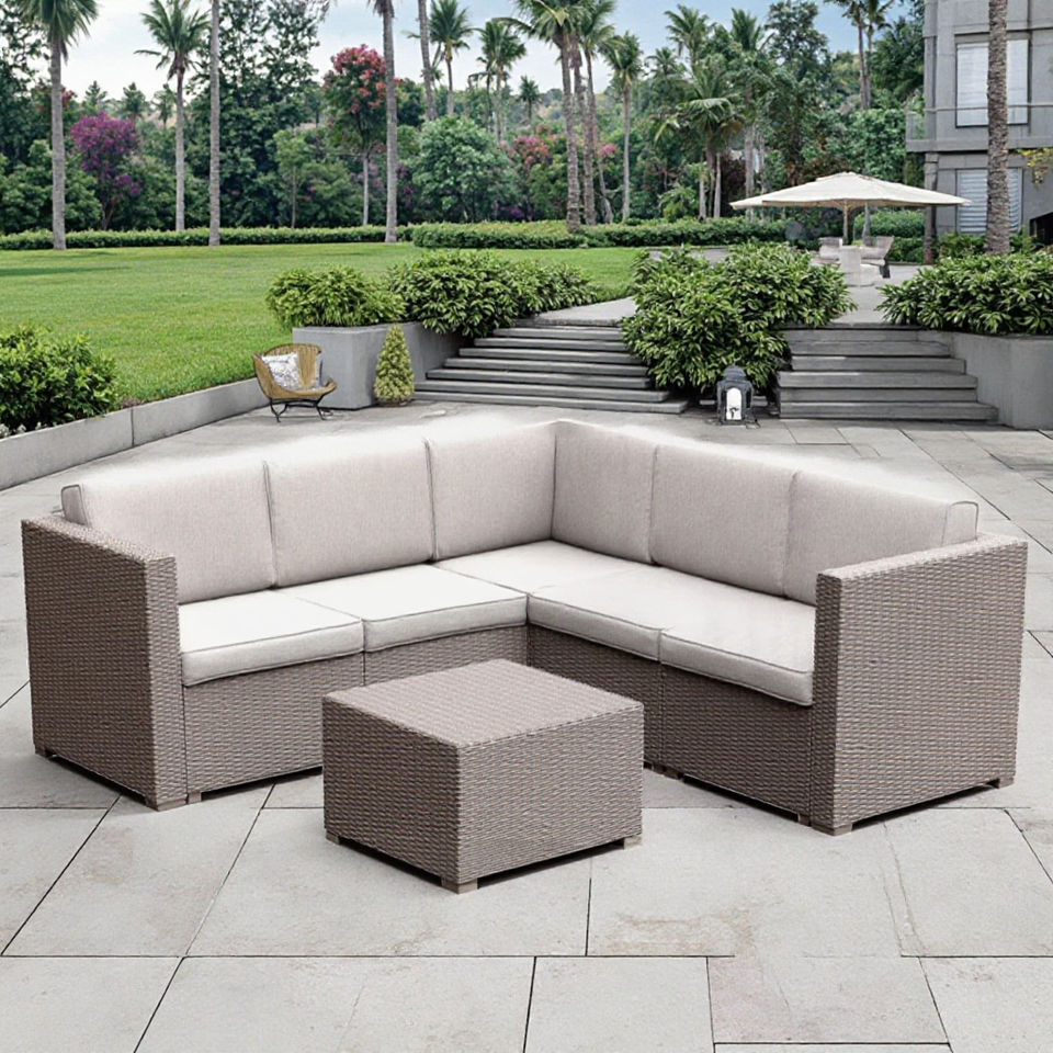 Patio extérieur jardin PP plastique injection rotin motif canapé ensemble de meubles élégant ensemble de canapé sectionnel en plastique