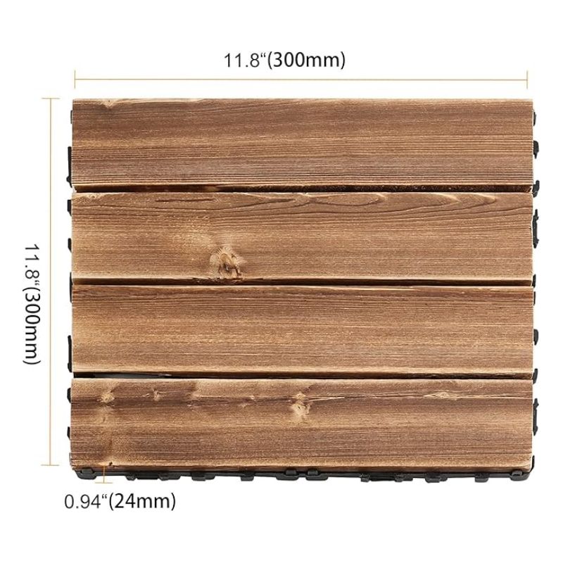 Dalles de terrasse extérieures en bois massif carbonisé, dalles de terrasse emboîtables, dalles de terrasse en bois dur