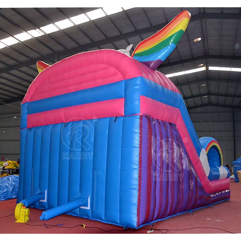 Terrain de jeu extérieur thème licorne sautant château plein d'entrain gonflable toboggan gonflable Slip N toboggan pour adultes