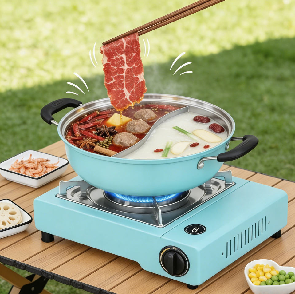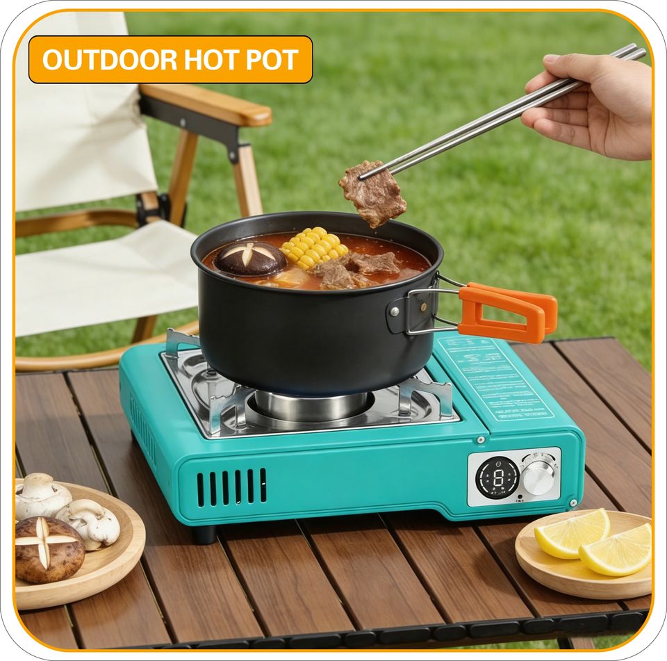 Outdoor Portable Butane Gas Barbecue Hot Pot Stove Stainless Steel Surface Small Card Type