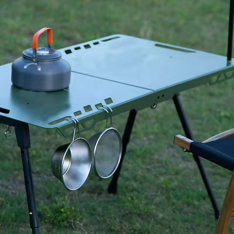 Table de camping portable d'extérieur réglable : table tactique pliable en alliage d'aluminium ultra légère avec un design moderne.