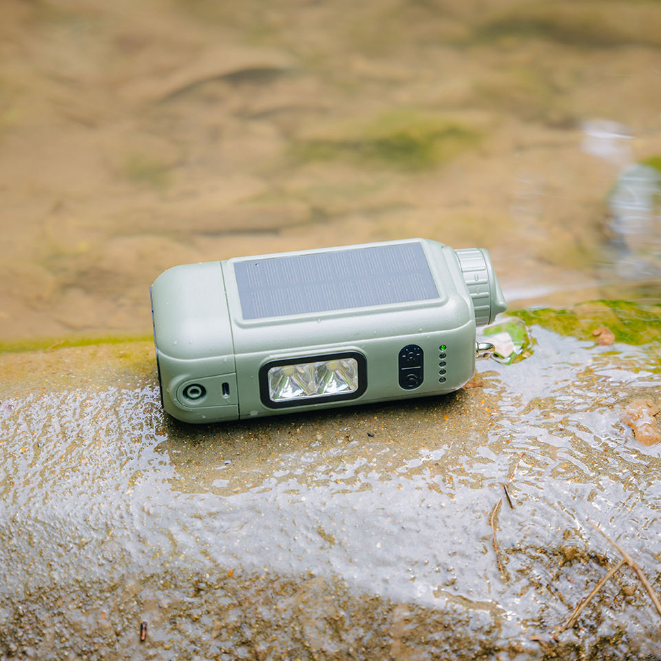 Fonction:Flashlight, SOS Signal Light,Solar Panel, Hand Cra