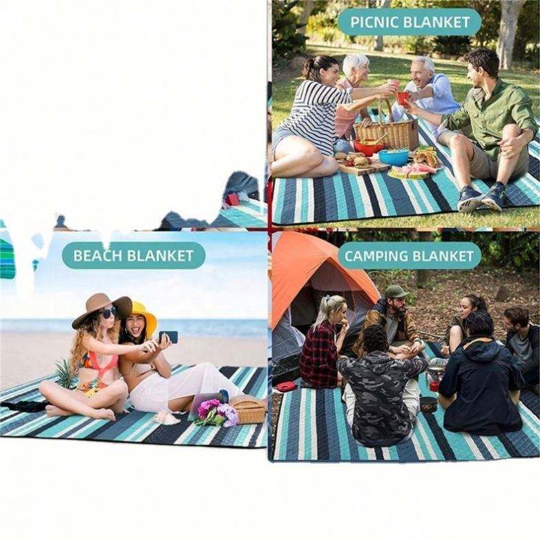 Tapis de plage pliable portable d'extérieur en acrylique, résistant au sable et imperméable, extra large, en cuir, pour pique-nique