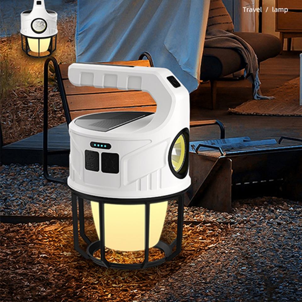 Lampe torche multifonctionnelle portable d'extérieur à 360 degrés, lanternes LED rechargeables solaires pour le camping