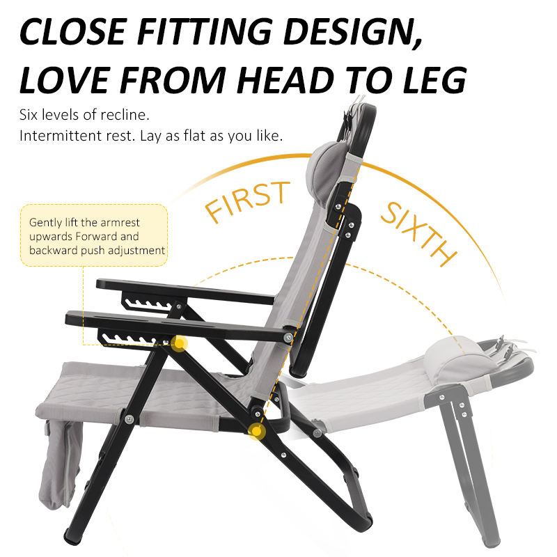 Chaise de camping pliante légère et robuste avec réglage du dossier à six positions, portable pour l'extérieur