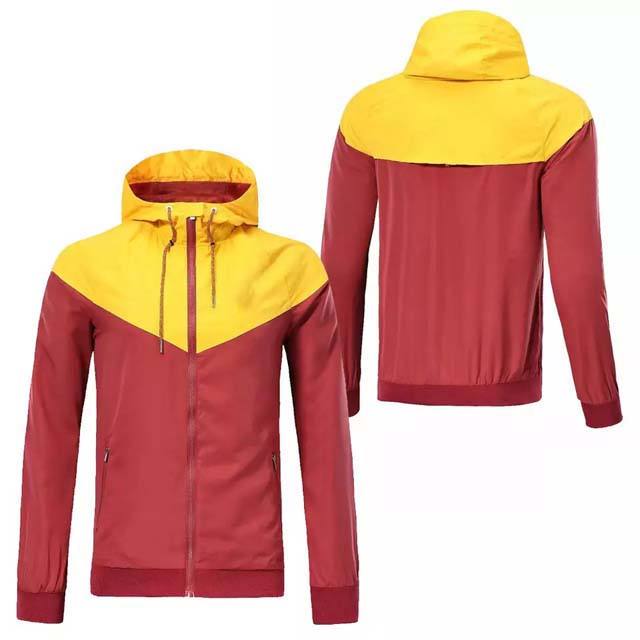 Vêtements de pluie en plein air vestes imperméables jaune et rouge bloc couleur prix de gros 100% coton nylon haute rue hommes veste d'hiver