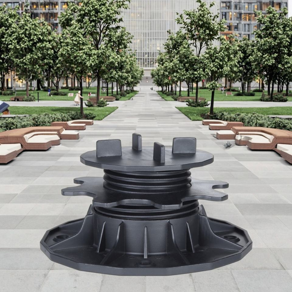 Article:Pavés de nivellement extérieurs à accessibilité surélevée avec socles en plastique réglables.