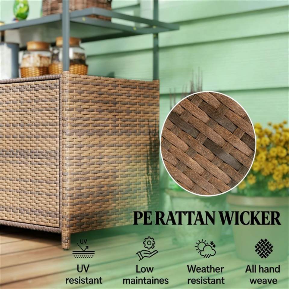Chariot de service de bar extérieur en rotin avec étagère de rangement – Produit polyvalent et durable