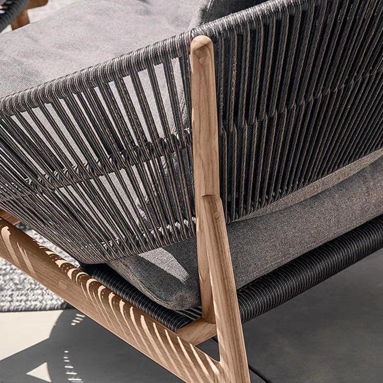 Ensemble de canapé en rotin d'extérieur, chaise en bois de jardin, chaise longue de piscine, canapé résistant aux UV avec housse de coussin amovible
